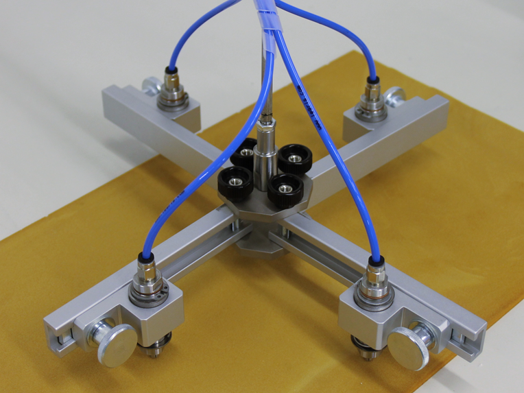 Je nach Grösse und Gewicht des abzuhebenden Teils, können mehrere Greifer simultan eingesetzt werden. Die Befestigung des Greifers erfolgt mit einer Klemme am Aussendurchmesser des Gehäuses.