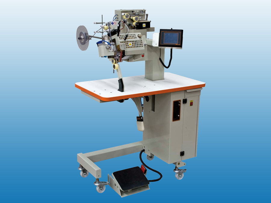 Absolut flache Nähte durch mit Metering Device programmierbaren Bandspannungen, obere und untere Transportrolle separat angetrieben und somit in der Geschwindigkeit differenzierbar. Aussenliegende untere Transportrolle für kleinste Radien und zur Verhinderung von Stoffeinklemmen. Schneiden des Bandes am Artikelende und wieder zuführen für den nächsten Artikel. Das Stop-Start System ermöglicht es, mitten in der Naht anzuhalten, die Heissluft wird zum Schutz von Bedienperson und Material abgeschalten und steht dank Reservelufttank beim Weiterverarbeiten sofort wieder zur Verfügung. Kleiner und hocheffizienter Bläser, welcher eine freie Sicht zum Klebebereich gewährleistet.