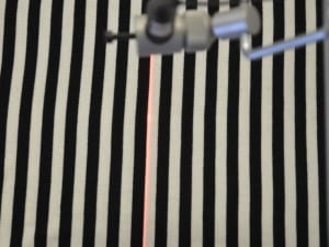 Projizieren einer Laserlichtlinie um gestreifte Teile hochpräzise auf die Streifen ausgerichtet, zu laden.