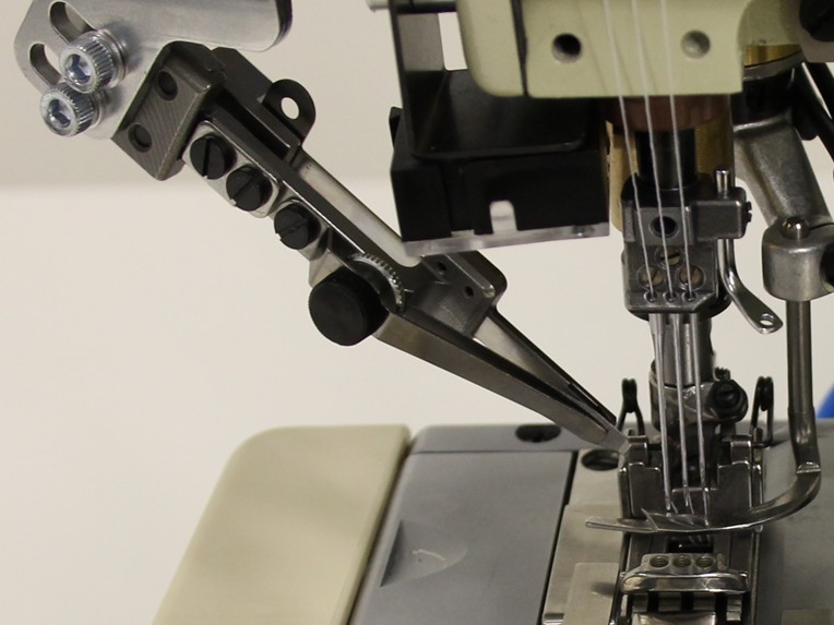 Die seitliche Sohle des Drückerfusses wird mit einem Zylinder mittels Stichzählung bei dicken Quernähten oder mehrlagigen Stoffübergängen angehoben und sorgt für ein hochqualitatives Nähergebnis auch über schwierigen Nahtstellen.