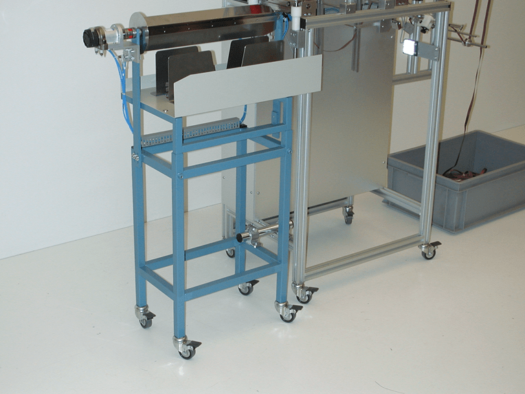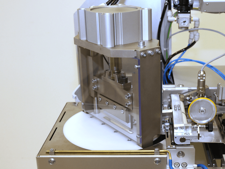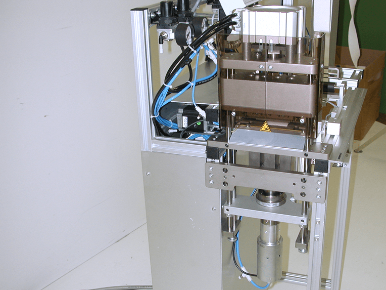 Schneidautomat zum Ablängen von Bändern, Gurten und Seilen aller Art mit neu konzipiertem Bandtransportsystem. Bewährte Mechanik, Pneumatik und Elektronik garantieren eine hohe Produktivität und Präzision. Unterschiedliche Qualitäten können ohne grosse Umstellungen sofort verarbeitet werden. Ein neues Band wird einfach in die Bänder eingelegt und mit einer Taste bis zum Messer vor transportiert. Eine starke Messereinheit trennt schnell und genau auch härtere Bänder. Der extra starke Motor treibt die Transportbänder sowie den Vorabzug an.