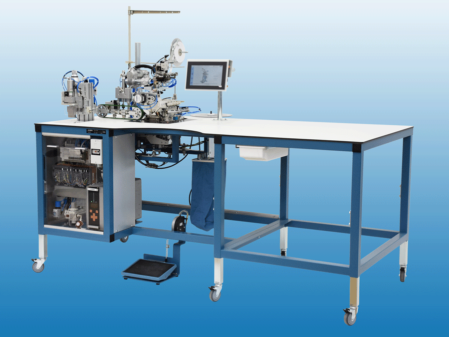 For serging one or more sides of trouser, back and front panels without kneelining, including seat- and fly seam, also fro all kinds of serging operations on various types of material in the production of ladies and mens wear such as skirts, skirt linings, dresses, trousers, coats and similar garments.