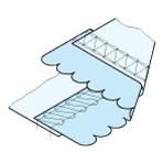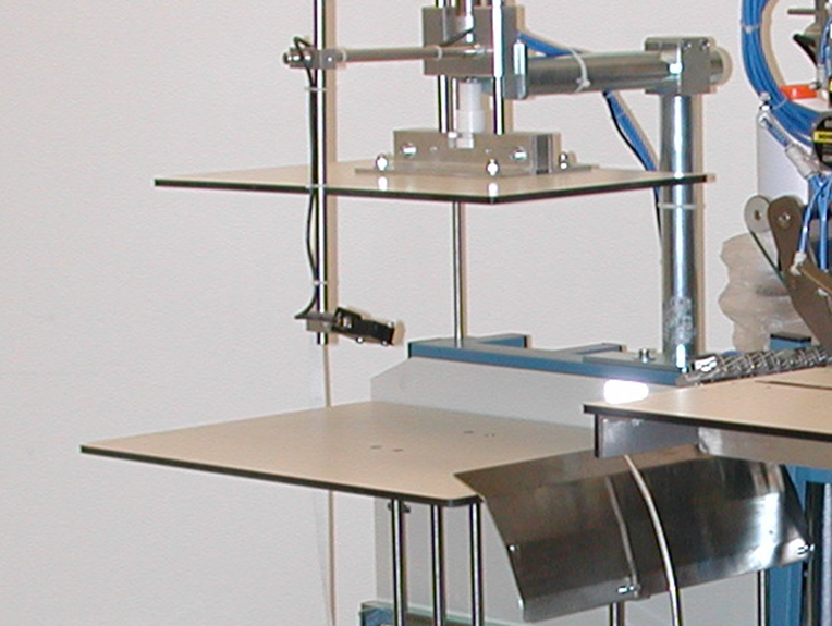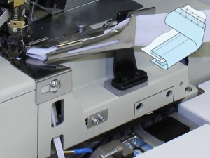 The finished garment will be folded in the middle of the seam and stacked. Top stacker position constant due to automatic height compensation.