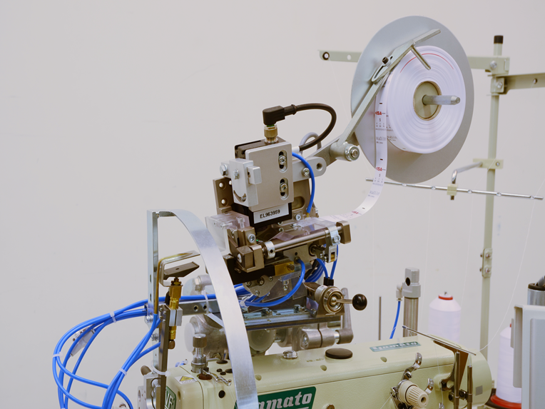 Depending on the seam, up to 10 different tape tensions can be programmed, which will be used automatically after a pre-defined number of stitches. The metering device with integrated sensor constantly monitors the tape tension and adjusts instantly for any changes.