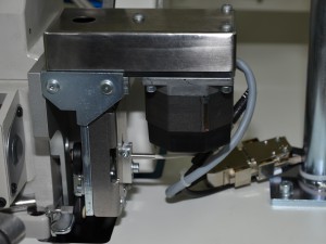 Label dispenser by stepper motor. The label is positioned between elastic and fabric. 2 stepper motors, 2 drivers