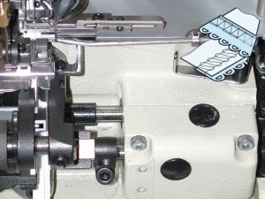 Changing the feed of differential feed dog by stepper motor. For each seam a changing on any place with any value can be programmed. Ideal to gather, stretch or flaten fabric with highly accurate predefined places.